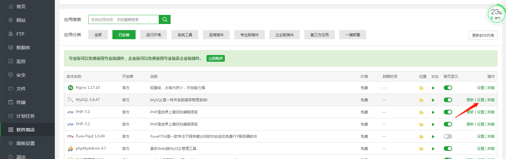 首先安装宝塔,参考官网的 宝塔安装教程