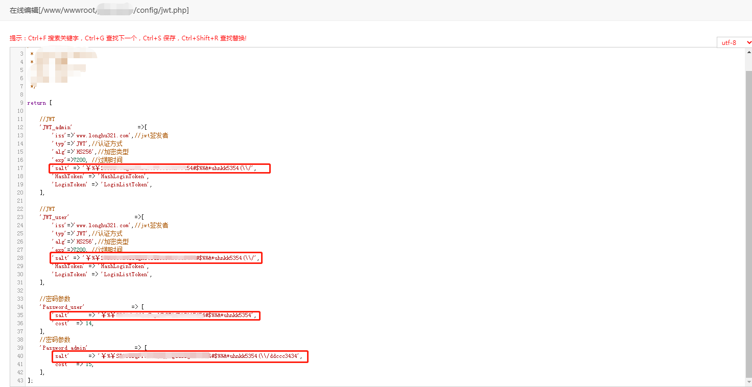修改同目录下的jwt.php,文件里面的salt参数需要修改或添加任意几个数字字母