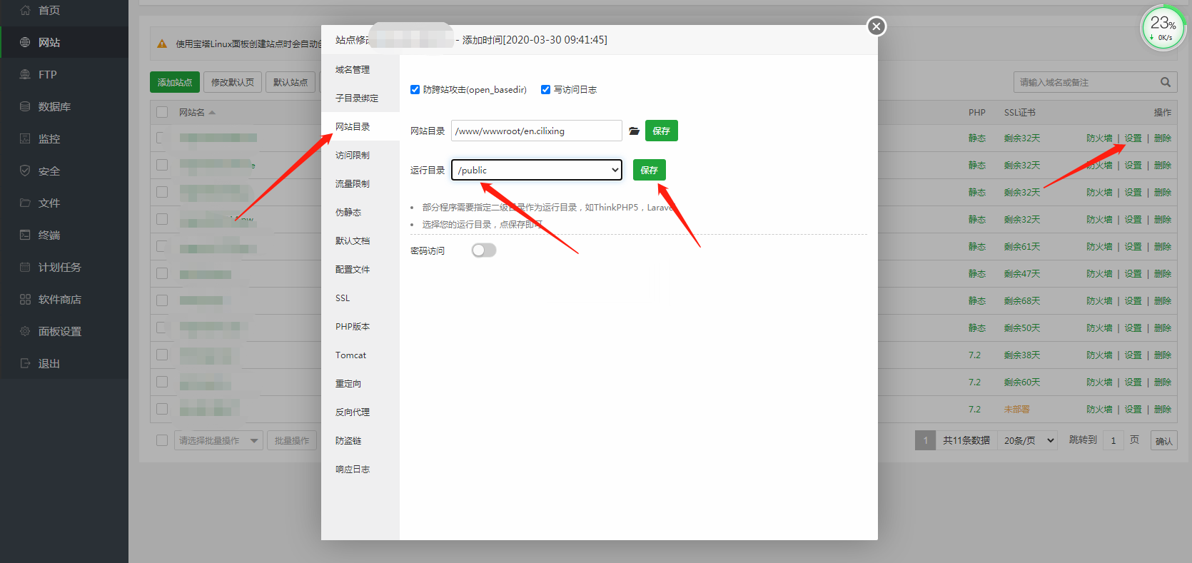修改运行目录为/public