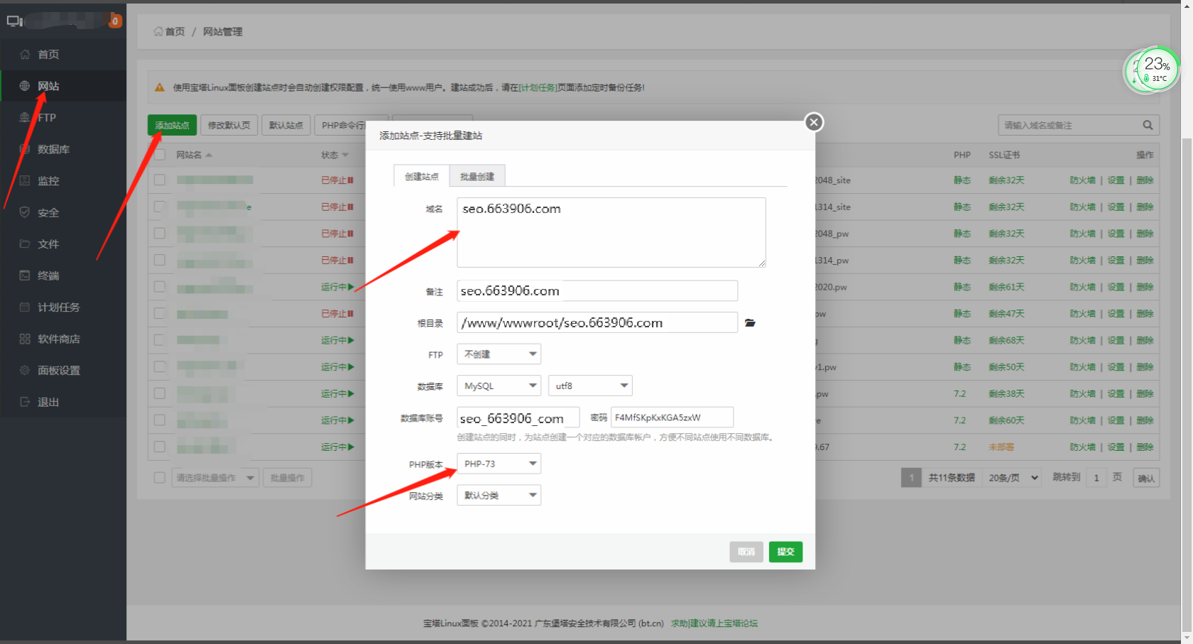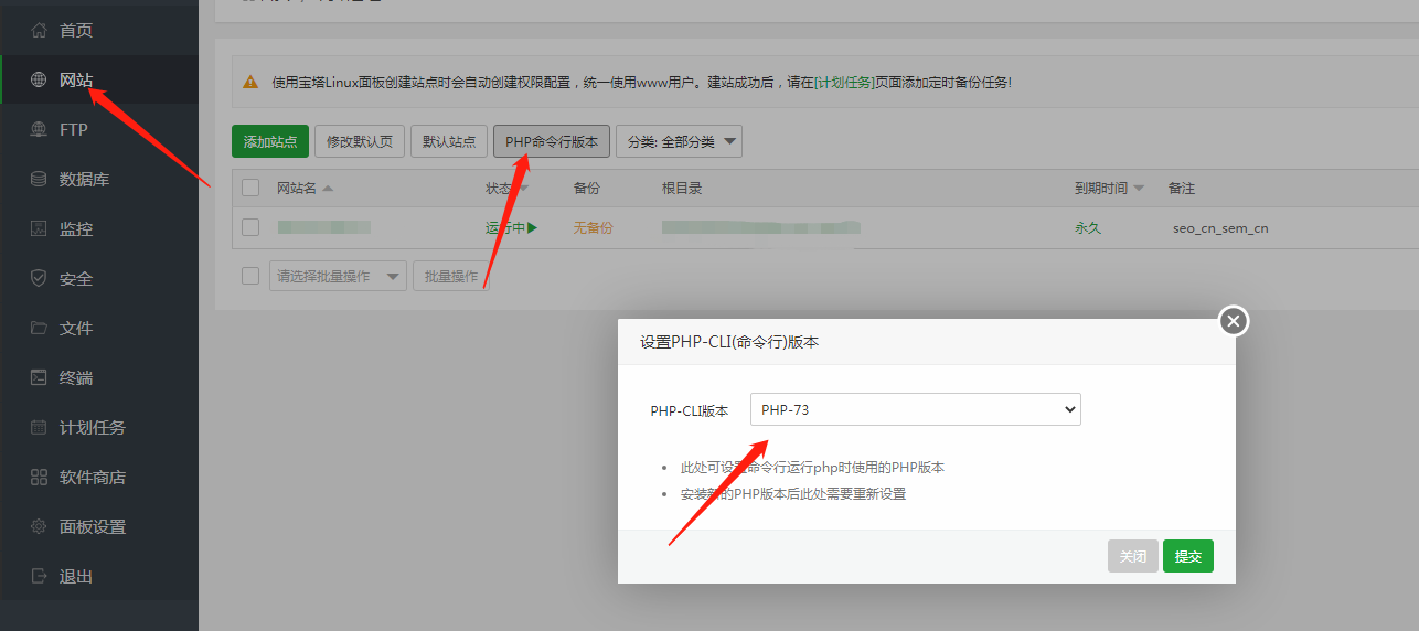 脚本的执行也依赖于php版本70-73,请在 宝塔后台网站-php命令行版本 中检查php命令行版本是否正确