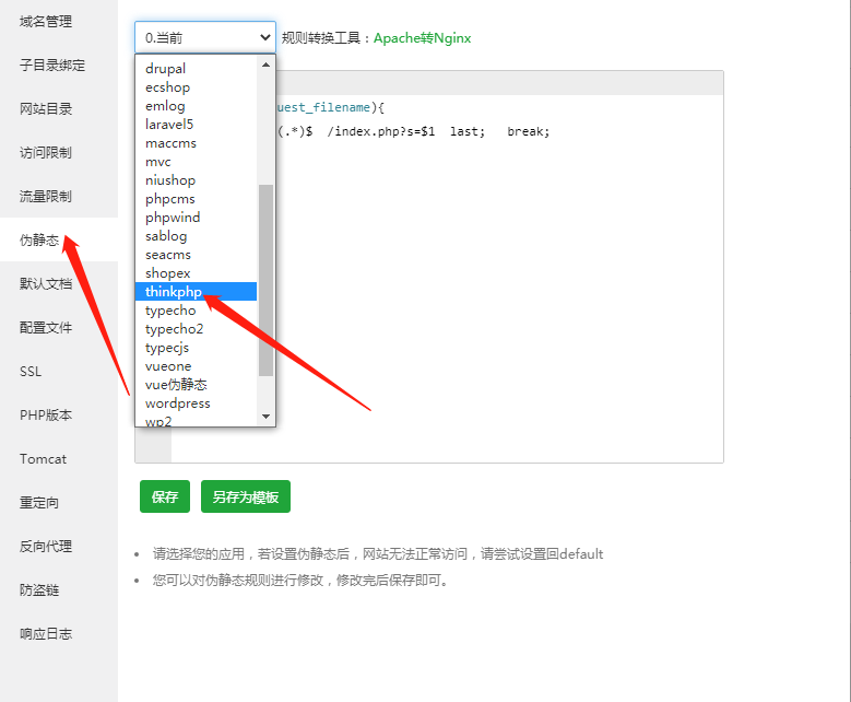 修改伪静态为thinkphp