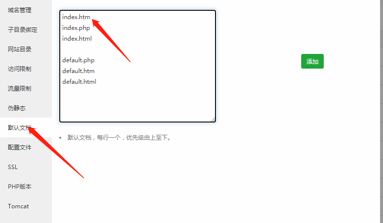 修改默认文档为index.htm(也可以修改为index.html可以修改后查看具体效果)